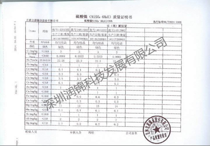 產(chǎn)品介紹:吉恩硫酸鎳是國(guó)內(nèi)知名品牌,具有雜質(zhì)含量低,無(wú)有機(jī)物帶入,質(zhì)量穩(wěn)定等特點(diǎn)。