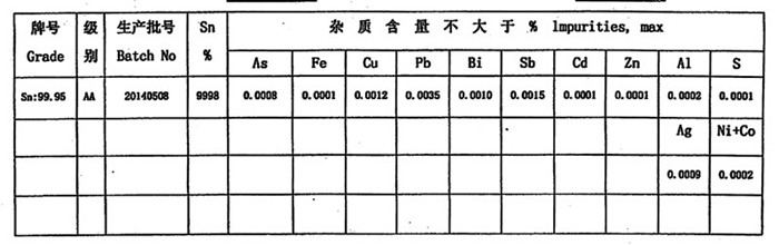 主要用途:依客戶要求定做規(guī)格,主要用于硫酸鹽和甲基磺酸鹽鍍錫,由錫錠鑄造,品質可靠。